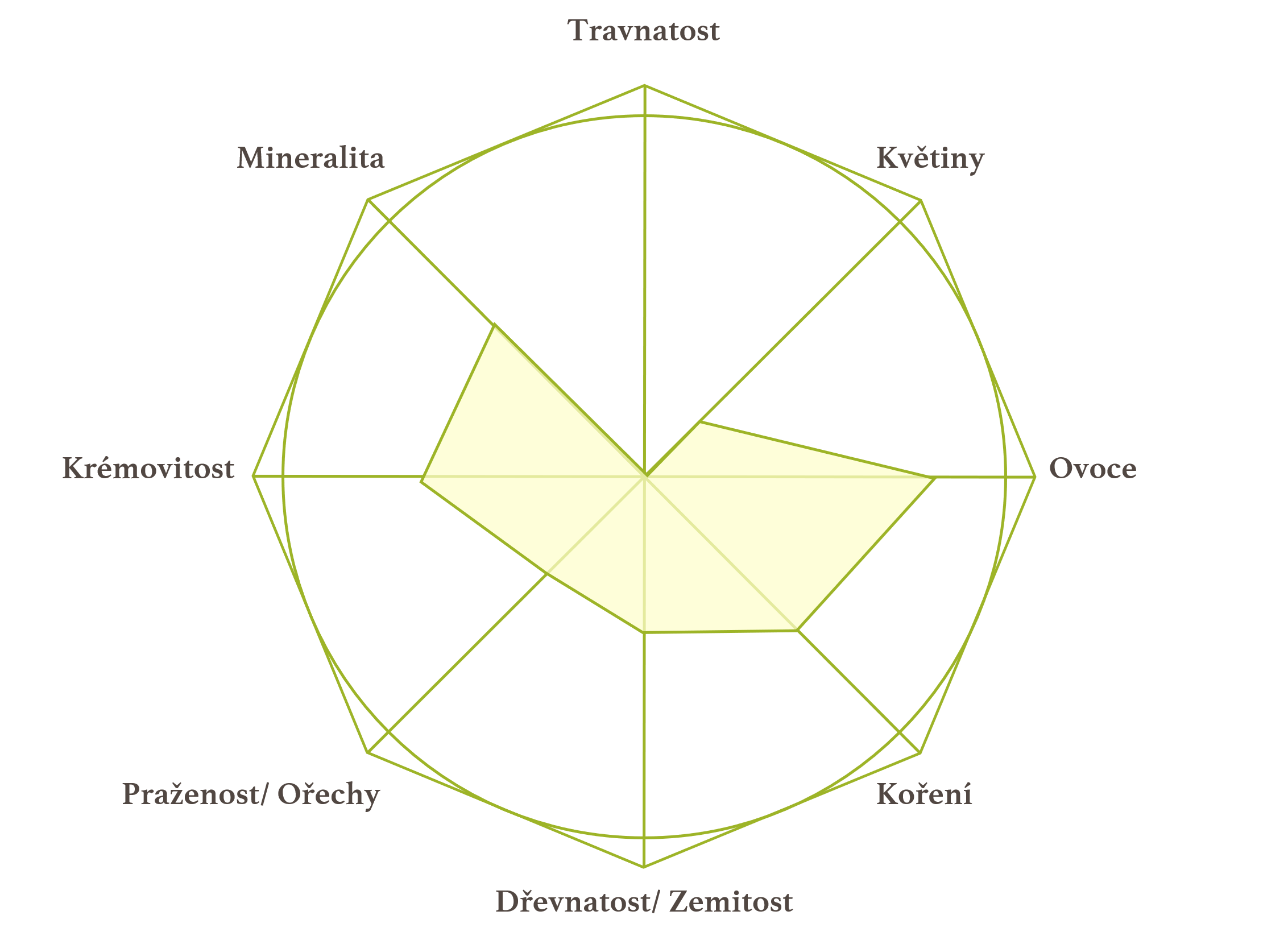 Drobné podrcené lístky tmavě hnědé barvy s častým zastoupením zlatých tipsů