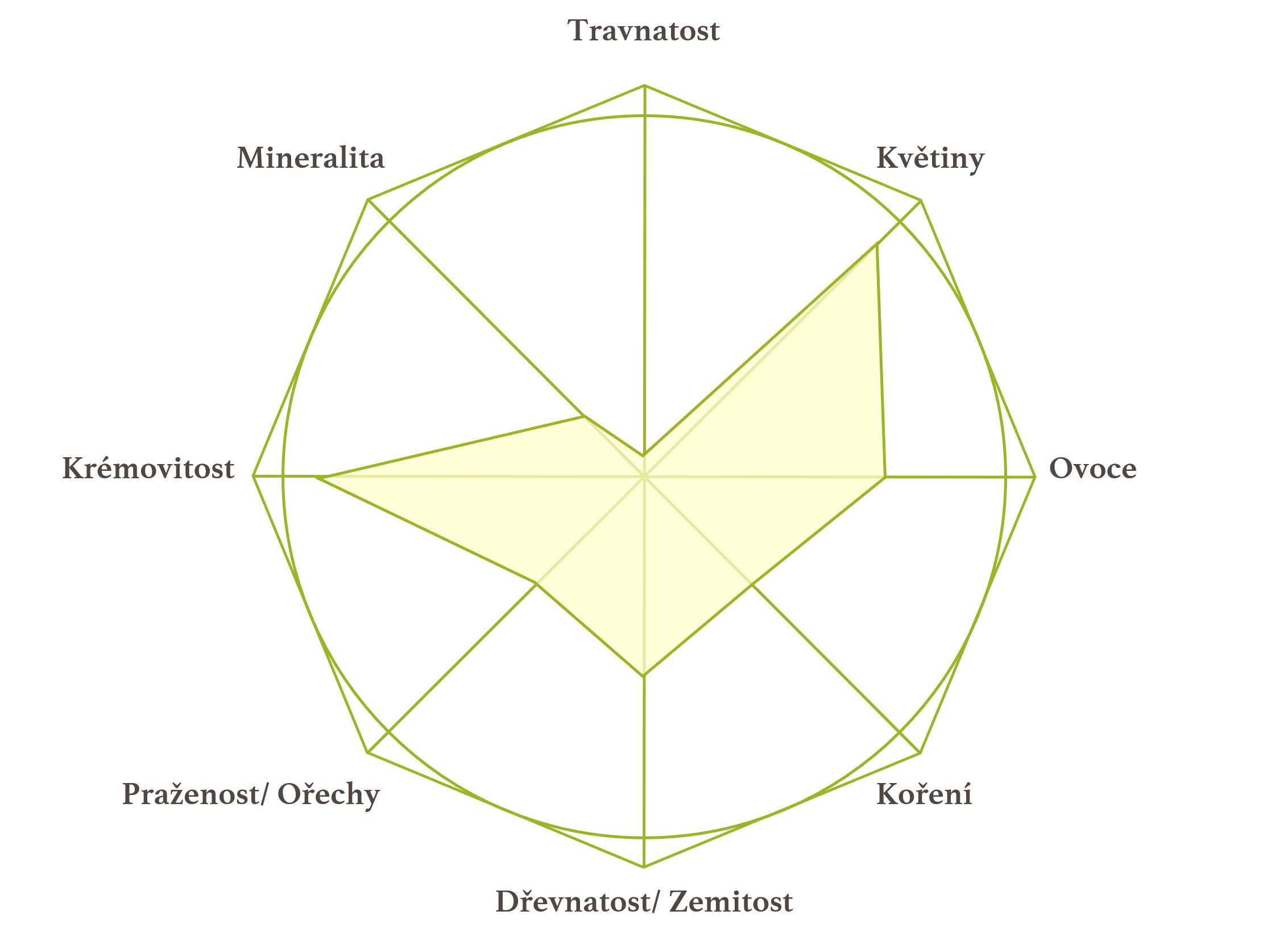 Čokoláda; smetana; růže; zahradní květiny, jemná svíravost, v dochuti květiny a mléčná čokoláda, dře na patře. V pozdějších nálevech se začíná objevovat máta a hořká čokoláda.